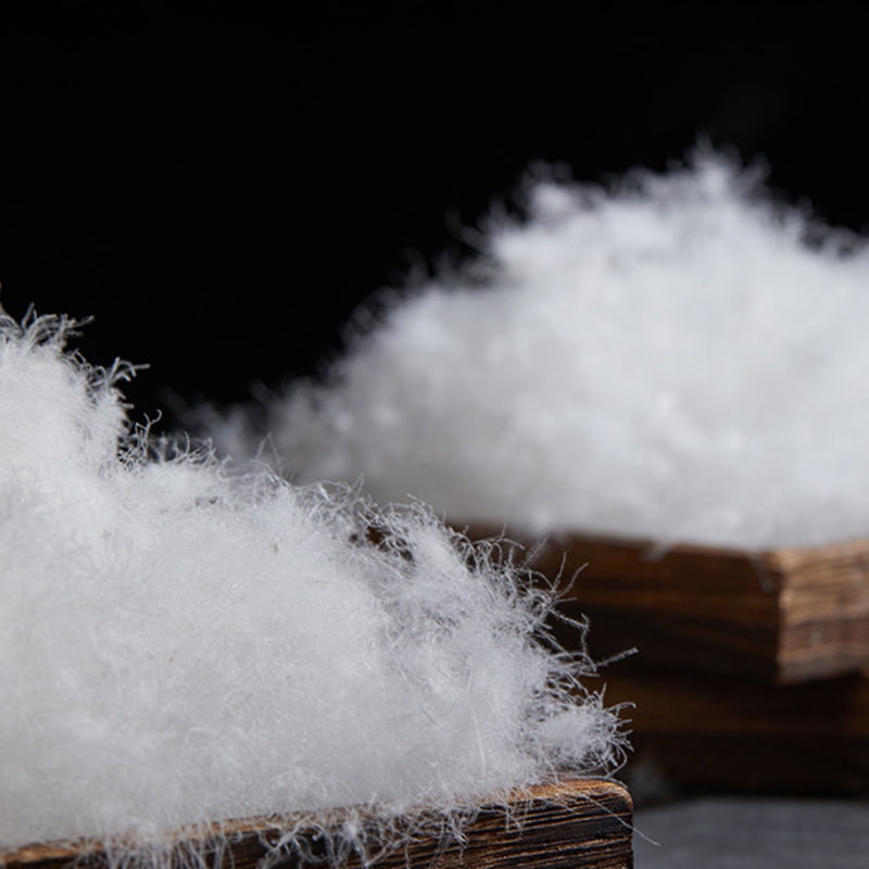 Přírodní prachové peří pochází z oblastí bílých hus produkujících jádrové peří – břicha, krku a křídel. Má nadýchanou strukturu, která je vědecky sladěna s vločkovitým peřím a tvoří vynikající kombinaci udržující teplo. Jako vysoce kvalitní živočišné proteinové vlákno je každé vlákno z husího peří pokryto trojúhelníkovou sítí pórů v nanoměřítku. Tato přesná struktura mu dává vynikající vlastnosti pro regulaci teploty a může inteligentně upravovat mezeru mezi vlákny podle okolní teploty, aby vytvořila systém dynamické regulace teploty. Když se tepelná energie vyzařovaná lidským tělem dotkne spodní vrstvy, struktura pórů může účinně absorbovat teplo a vytvořit tepelný cyklus, přičemž vytvoří vícerozměrnou tepelně izolační bariéru, která účinně blokuje pronikání studeného vzduchu a vytváří dlouhotrvající zážitek z nošení v teple.