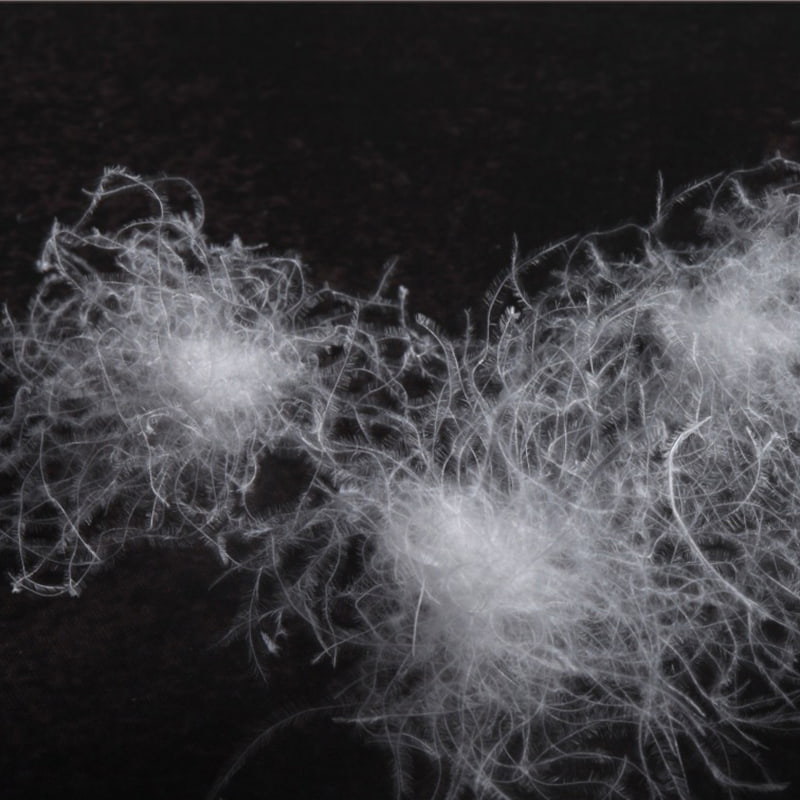 Pochází z přirozených chladu odolných částí vzácných bílých hus - břicha, krku a spodní části křídel, jeho jedinečná rákosovitá struktura prachového peří a vločkovité peří tvoří kombinaci zlatého poměru. Jako vynikající představitel špičkových vláken živočišných bílkovin má každé vlákno z husího prachového peří trojrozměrný kulovitý tvar s desítkami milionů nanorozměrných trojúhelníkových matricí pórů hustě rozmístěných na povrchu. Tyto přesné struktury pórů jsou jako mikroregulační ventily teploty, které mohou inteligentně snímat rozdíl okolní teploty a autonomně upravovat mezeru mezi vlákny. Když se tepelná energie těla uvolní, póry vytvoří trojrozměrnou tepelně uzamykatelnou vrstvu prostřednictvím fyzikálního adsorpčního efektu a zároveň vytvoří vícerozměrnou tepelně izolační ochrannou síť, která účinně blokuje trojrozměrnou cestu pronikání studeného vzduchu a vytváří pro nositele mikroklima s konstantní teplotou za každého počasí.